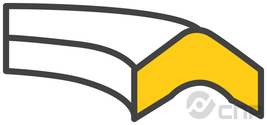 Шевронный пакет представляет собой многослойное уплотнение из нескольких колец, где ключевой элемент – это довольно гибкая, способная выдерживать перепады давлений, v-образная манжета. Опорное кольцо в пакете является основой для формирования шевронного комплекта и изготавливается из материала, аналогичного манжете или используется другой прочный материал.Нажимное кольцо в составе шевронного уплотнения: